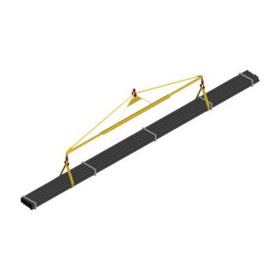 Ideal for handling 40" bundles or a single joint of pipe. Nylon lifting straps fasten securely to spreader bar to prevent bundle breakage and damage to the pipe.
