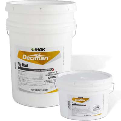 Decimari Fly Bait’s dual modes of action attracts and kills house flies. Decimari’s highly effective, quick kill formula combines Clothianidin and NyGuard IGR to provide long-lasting control of flies.