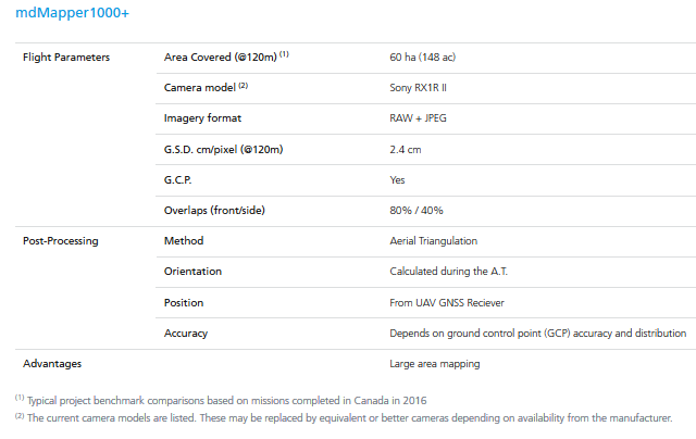 - mdMapper1000+ delivers an average flight time of 30 – 45 minutes, depending upon conditions.