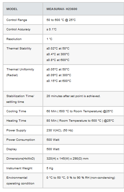 - Temperature range 50 to 600°C