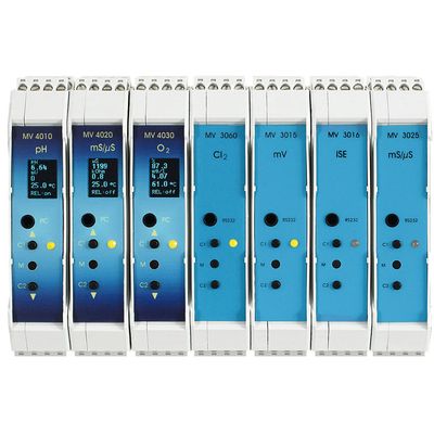 The transmitter series MV 3000 and MV 4000 are excellently suited for continuous measurements of one or more parameters in connection with process control units, data loggers, -printers or visualisation systems. They are characterised by high flexibility and simple handling. Calibrations can be done directly on transmitter. An additional display on MV 4000 simplifies measuring value checks, calibrations and makes each transmitter to a stand-alone measuring instrument. All transmitters can be connected with the display unit AZ 3000. In this way the customer gets a complete multiparameter measuring system with data logger and fieldbus interface RS-485. Simple software features configuring with logging of configuration parameters, calibration as well as displaying and recording of measuring values directly on PC using USB interface. Additionally the series MV 4000 allows actualisation of firmware via flash update.