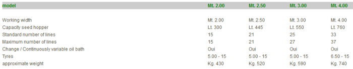 Squeegee land wheel. Crank and bacl try seed. Harrow after the parallelogram with pressure adjustment. Small Tooth anti obstruction of the furrow.
