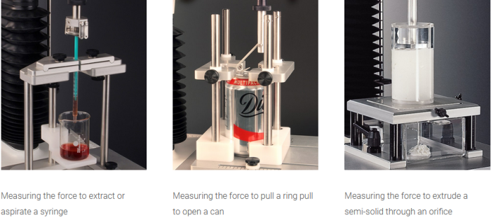 At their most simplistic form, material characterisation tests all have one of two things in common – a test in either tension or compression. A multitude of probes and fixtures are available that attach to the instrument for the support of the material or for specific application of force/deformation to the material.