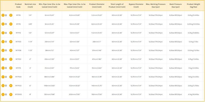 Mechanical Pipe Test Plugs have bypass inside to make hydro test at pipes diameters ¼” to 8” (6mm to 200mm) as standard production, higher sizes can be produced to order. They can be suitable to test the pipes as copper, steel, aluminum, HDPE and etc. The test can be performed up to 12 bar working pressure at 70-degree tests and can be produced for higher pressure upon request. They have a wide usage area such as construction as well as air conditioning, heating, and refrigeration.