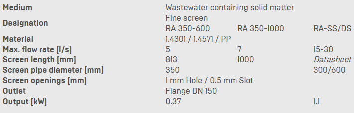 - mechanical pre-treatment stage for decentralized wastewater treatment plants