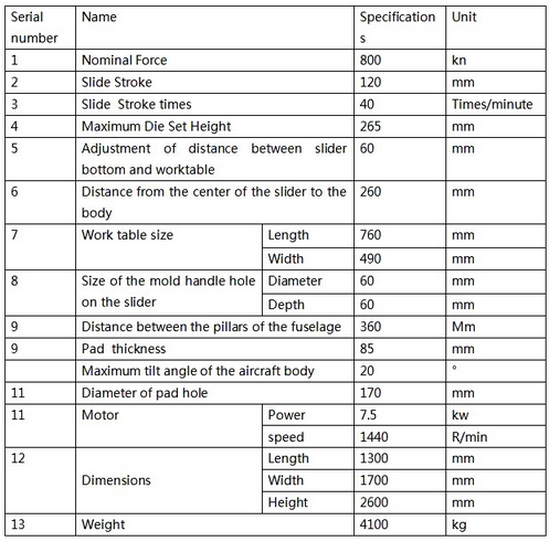 The machine body workbench is equipped with a workbench pad that is fastened to the workbench with bolts. The pad pad has T-shaped grooves for installing molds. The left and right guide rails are fastened to the body with screws, and the slider uses the V-shaped groove of the guide rail to ensure the accuracy of its vertical movement. The crankshaft is closed horizontally, and wear-resistant sleeves are installed in the through shaft sleeves on both sides of the machine body. The through shaft sleeves are fixed to the machine body with bolts, and the crankshaft rotates and moves inside the shaft sleeves. There is a control mechanism installed on the right side of the fuselage. On the back of the fuselage, there is a tilt bracket, and rotating the tilt screw can make the fuselage stand upright or tilt, with a maximum tilt angle of 20 °.