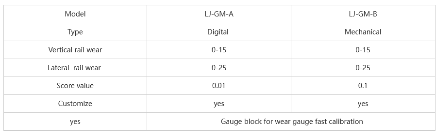 - Mechanical rail wear gauge is easy to operate,high reliability,small volume,light weight etc.