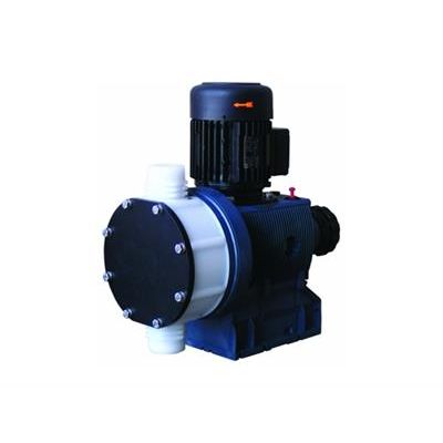 Mechanically operated diaphragm dosing pumps with three-phase or mono-phase electric motor. The casing is manufactured using PPE, with IP65, providing good resistance in aggressive environments. The continuous regulation of the diaphragm´s course is carried out by varying the actuator´s eccentricity, thus resulting in a continuous movement in the mechanism and the dosiied luid, minimising friction and mechanical and hydraulic shocks.