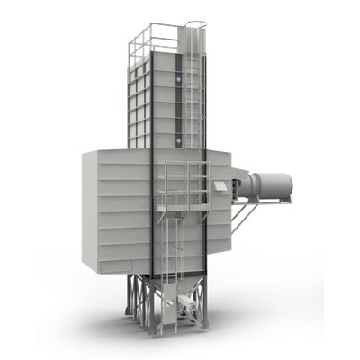 The mixed flow batch dryers in the MB series are ideal for drying between 20 and 200 tons of grain per day. They operate in batch mode: the drying cycle for a batch is carried out through a sequence of four phases: loading, drying, cooling, and unloading. Each phase corresponds to a different configuration of the dryer.