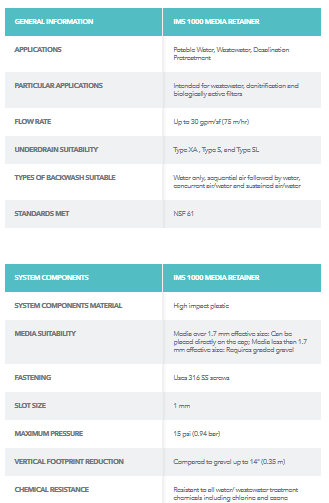Beyond exceptional, worry-free performance, the I.M.S. 1000 media retainers deliver a host of other benefits including lower capital expenditures related to its ease of installation and potential for a smaller vertical footprint, reduced operational expenses due to longer filter runs using less water and energy, and the product’s performance over an extended period of time.
