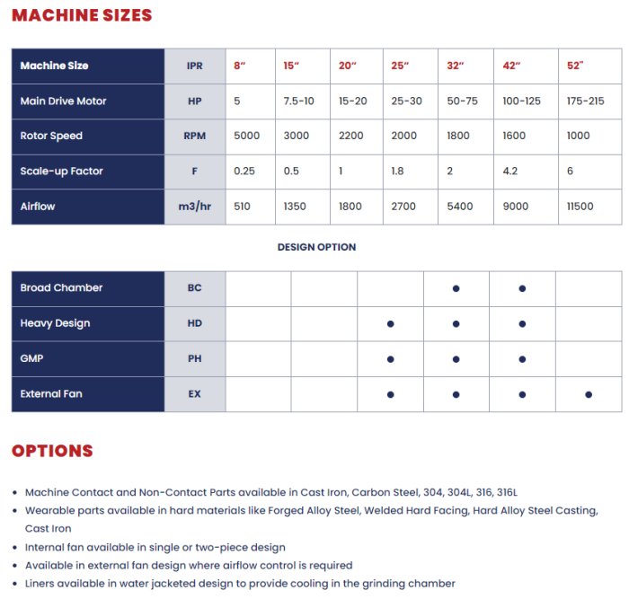 Achievable Output Fineness: 250 Microns to 50 Microns