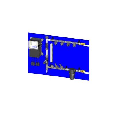 All of the pre-fabs include 3/4" PVC loops with brass isolation valves, flow indicator, 1" basket strainer, back check, sample port and four quick release injection tees on a 1/2" blue poly panel.