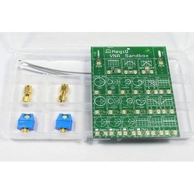 We have created the VNA Sandbox as a way to get familiar with VNA measurements and their meaning on the screen. You will start with a calibration of the measurement with the on-board UFL calibration kit. Then you are ready to measure the different impedances and networks. A tutorial is included that will explain how to measure, what you see on the screen and why some of the measurements may look different from what the theory tells us. There are 1-port networks, 2-port attenuators, filters and an active amplifier component. Two antennas give you the opportunity to try the point-and-match function of the our VNA products, and measure the coupling between them. The VNA Sandbox can be used with any VNA up to 6GHz. You can order one of our VNAs as a package with the VNA Sandbox to get started measuring right out-of-the-box.
