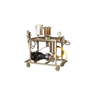The Model L also includes a 2.5" diameter spiral membrane housing for performing small scale spiral membrane tests. The pilot plant operates in batch or fed batch mode. The Model L pilot plant is cart mounted on wheels for ease of setup and operation.