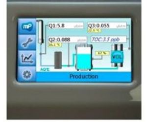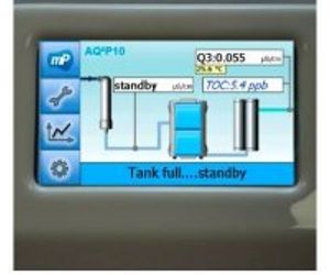 The TOC monitoring during production and intermittent measurements during non-use periods allows to check the organic content in water continuously. The TOC value is measured between 1 and 999 ppb and can be shown in the display to monitor organic impurities.