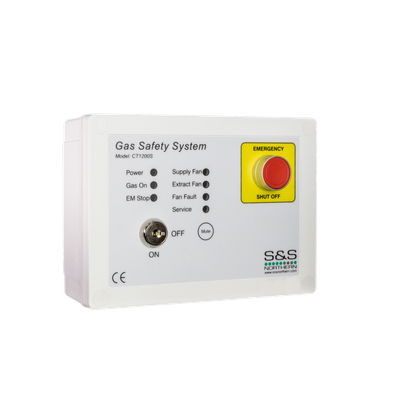 The fans can be monitored through air pressure switches. To operate the Merlin 1200S the fans should be turned to the ‘on’ position, once the panel receives a signal to indicate the fans are operating the key on the panel can be turned to the ‘on’ position and this will open the gas solenoid valve. If the fans should fail, the ‘fan fault’ LED on the panel will illuminate and the gas solenoid will close. Additional sensors and safety shut off buttons can be wired into the panel