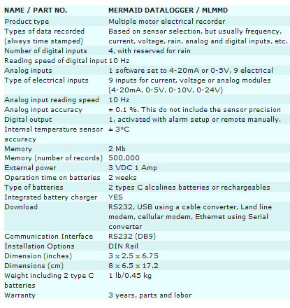 The MerMaid hydraulic and electrical datalogger is a very small AC and battery powered datalogger that is able to monitor 3 phases for 3 motors, plus 4 digital inputs and one analog input. It reads every input 10 times per second. A reading is recorded only when its value has changed. This way for most lift stations it is possible to record one month of data before the newest data replaces the oldest. Each motor input can be used to record frequency, current or voltage. This device, which was created to do the best pump station diagnostic available is also perfect for preventive maintenance and troubleshooting electrical equipment. It can tell which motor, pump or equipment will fail next. It can find intermittent problems in minutes instead of hours or days without replacing parts.