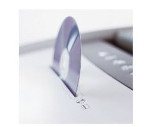 The separate media cutting unit with a waste container effortlessly shreds CDs/DVDs, credit and loyalty cards as well as floppy discs into small particles (2 x 2 mm). The shredded material can then be disposed of with the waste materials already sorted.