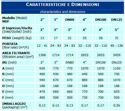 - Filter principle: 120 mesh (125 micron) lamellar disc cartridge
