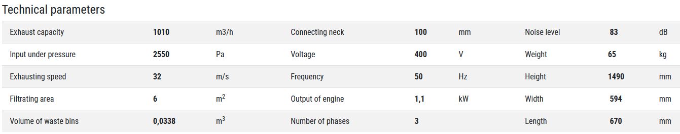 Massive robust construction developed for difficult conditions of metal working operating units. Simple operation and easy handling with waste bin. Possibility to connect venting terminal for less frequent cleaning of the workshop.