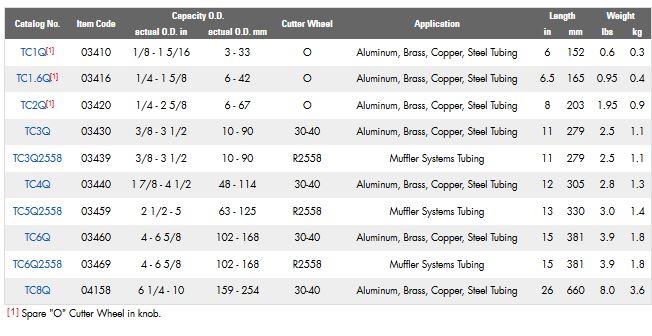 Quick Release - Model TC1Q -Metal Tubing Cutters