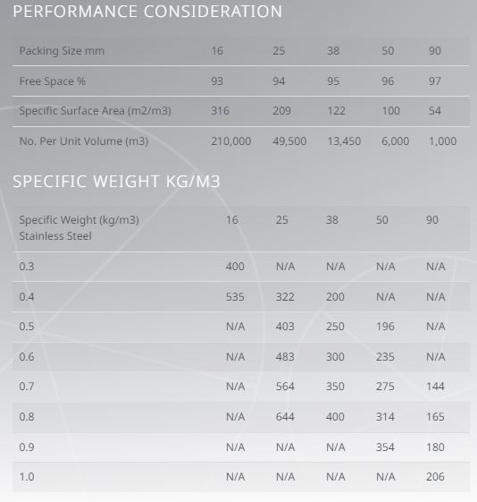 • Good liquid / gas distribution and high mass transfer efficiency.