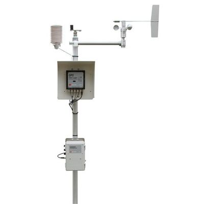Meteo station with GP2 data logger for measurement and registration of precipitation, solar radiation, wind speed & direction, soil temperature, rel. humidity and air tempera- ture. Incl. 2 m mast with cross arm, logger canopy and mounting material.