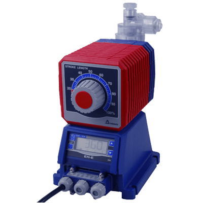 The EHE is the workhorse of the E-Series metering pumps. EHE Series pumps have outputs up to 20 GPH (75 l/h) and pressure capabilities to 150 PSI (10 bar). Combining the EHE performance with a turndown ratio of 1800:1 yields one of the most versatile pumps in the water treatment industry today.