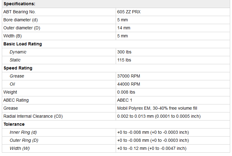 ABT - Model 605 ZZ PRX -Metric Miniature Ball Bearing