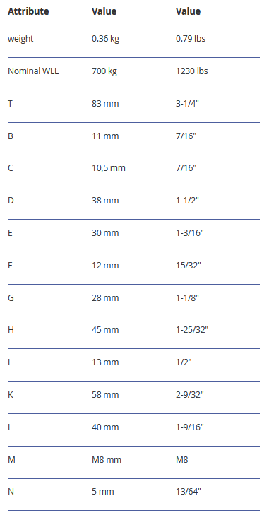 Innovative spring mechanism – prevents the lift bail from stopping with transverse load. Swivel joint in the lifting ring axis. Wear lenses for checking discard criteria. Integrated RFID transponder to make checks easier. Safety factors 4:1 and 5:1. Meets and exceeds the requirements of the American standard ASME B30.26.