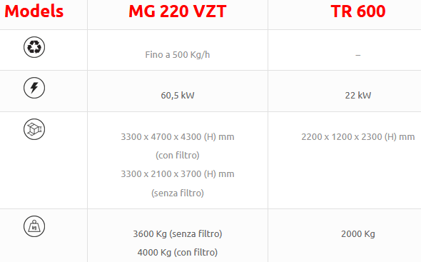 - RECYCLING SYSTEM: UP TO 500 KG/H