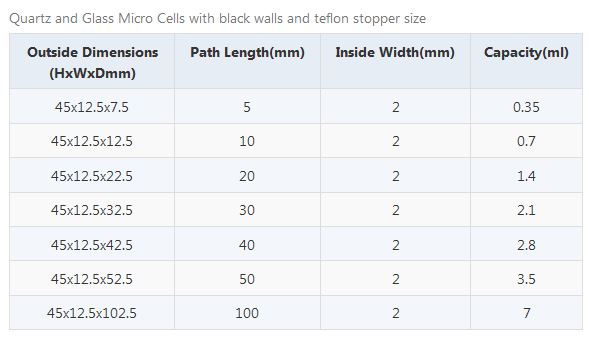 Micro cells with black walls teflon stopper(inside width:2mm ).