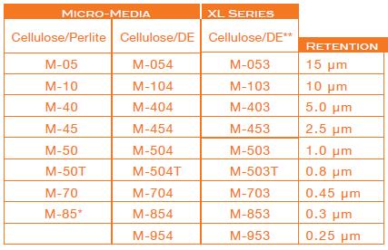 Micro-Media Series Depth Filter Media, formulated with cellulose, wet strength resin and diatomite and/or perlite is specifically designed for use in critical applications. All components of ErtelAlsop Micro-Media are listed in the CFR as generally recognized as safe for contact with food as dictated by 21CFR 176.170.