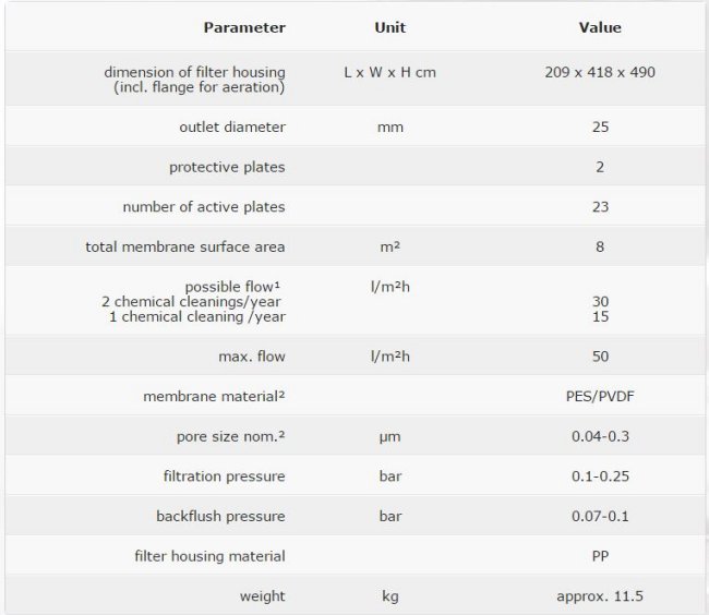 - laser welded membrane made of Polyethersulfone (KTW approved)