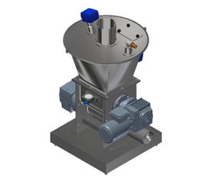The agitator reel located up-line from the dosing screw feed, as well as breaking up clumps and crusts formed in the silo, makes the material more fluid, resulting in even pressure and weight on the spiral screw.