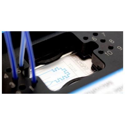 The teardrop micromixer has a powderblasted channel pattern equipped with a teardrop mixing structure. This make the teardrop mixer particularly suitable for fast and efficient mixing of fluids with relative low Reynolds numbers.