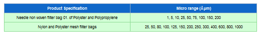 These filter bags come in micron sizes ranging from 0.54m to 15004m , and our clients are free to select the ones they need. We have our Nylon and Polyester Mesh filter bags too for our clients to try something with a wider range of microns.