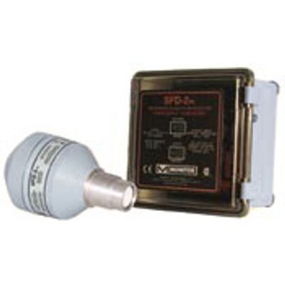 The SFD-2 has a split-architecture design consisting of the transceiver and a separate power supply/conditioning circuit board. The relays are incorporated on the power supply/conditioning circuit board, which is optionally available with a fiberglass enclosure and indicating lights. With the SFD-2, the Doppler-shifted energy signal from the transceiver is carried back to the power supply/conditioning circuit board through the user-supplied signal and power supply cable. At the power supply/conditioning circuit board the signal intensity is indicated with an LED and converted into a relay output based upon the sensitivity adjustment. The power supply/conditioning circuit board provides the power to drive the transceiver and contains the controls for setting sensitivity, hold-off time delay, hold-on time delay and fail-safe selection.
