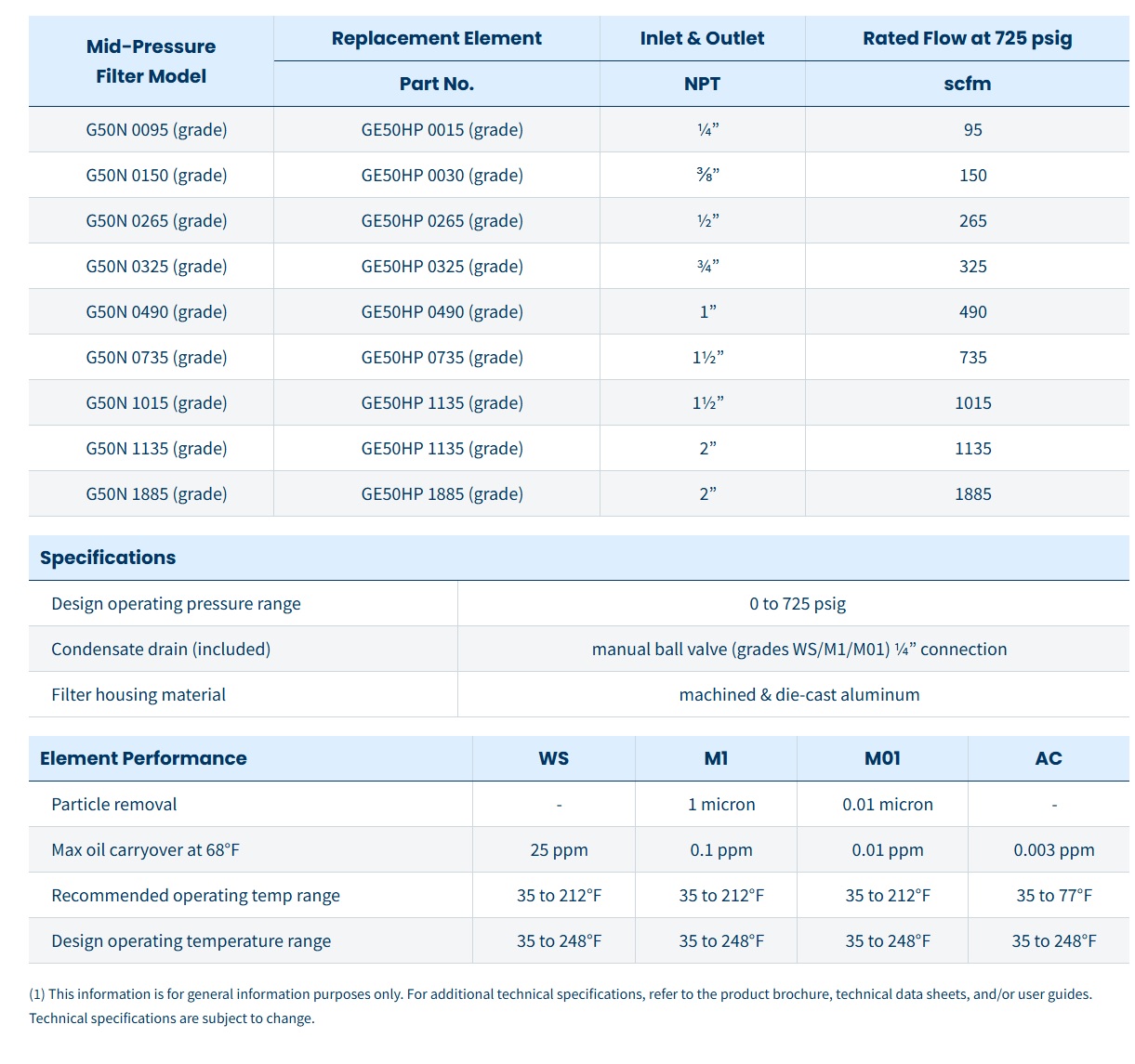 Nano - Model G50N Series -Mid-Pressure Aluminum Filters