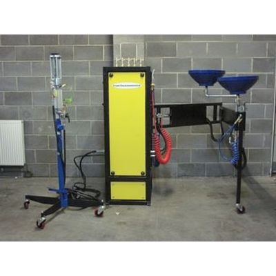 The control panel is dual sided, on one side is the engine bay draining equipment with an arm which can swing through 180 deg, on the opposite side the free standing fuel system.