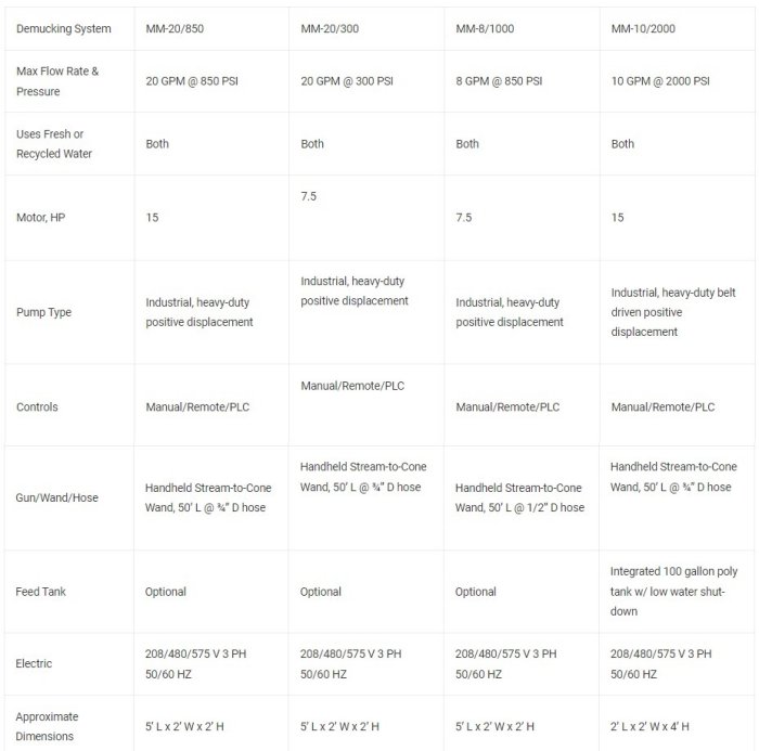 Highly recommended for the cleaning of heavy construction or mining equipment and trucks, our revolutionary demucking systems clean with the power of a fire hose but use a fraction of the water.