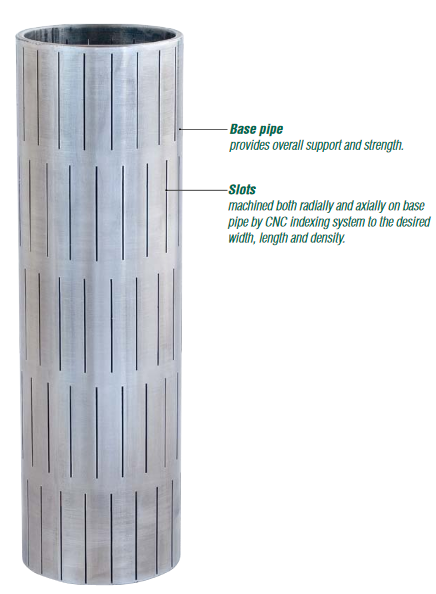 The slot size and slotting pattern are customized to achieve the required open area based on customer specifications. Multiple-staggered, non-overlapping patterns optimize tensile and torsion strength and increase the open area by two times compared to