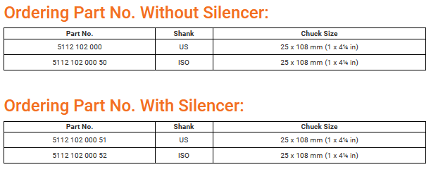 - Chuck Size : 25 x 108 mm