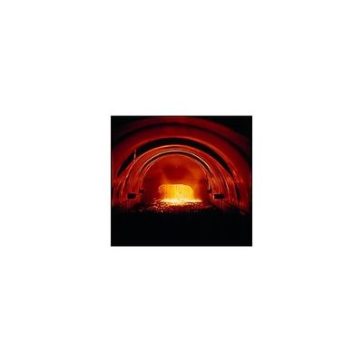 In the first half of the rotary kiln, the organic fractions of the ash and sludge are combusted, releasing significant heat, and forming the cellular structure required for the low density lightweight aggregate. Nearly 85 percent of the thermal energy required for the process is provided by the organic fraction of the ash and sludge. In the second half of the kiln, the pellets are heat hardened by exposure to high-temperature gases (1800 to 2000 degrees Fahrenheit) from the upstream combustion. This atmosphere creates the conditions necessary for the pellet sintering, creating the high-strength properties necessary for construction applications.
