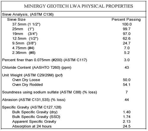Minergy LWA was also used for geotechnical applications. Lightweight backfill reduces the loads on poor subsoils, thus minimizing settlement. Lightweight backfill behind retaining walls exerts lateral pressures that are three to four times less than conventional sand, stone or clay backfill. Typical backfill projects include highway embankments, bridge abutments, fill for road construction, segmental retaining walls and lightweight fill for building structures.
