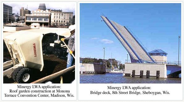 The stone-like end product, Minergy LWA™, was suitable for use in a broad range of concrete products and geotechnical applications. Minergy LWA was sold to concrete producers throughout the Midwest. It is used to reduce dead loads and improve fire ratings of concrete in numerous construction projects. For example, past projects include office buildings in the Chicago area; a student commons facility at St. Olaf College in Minnesota; a hospital in Ft. Wayne, Ind.; Michigan Tech University’s Environmental Sciences Building; and in Wisconsin, VA Hospital in Madison, 8th Street Bridge in Sheboygan, and Miller Park, Midwest Express Center and the Hilton Hotel in Milwaukee.