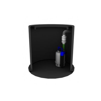 The Mini Drain consists of a premium quality 600mm diameter polyethylene tank with pedestrian rated manhole cover and a submersible drainage pump with a maximum flow rate of 180 litres and 9m lift.