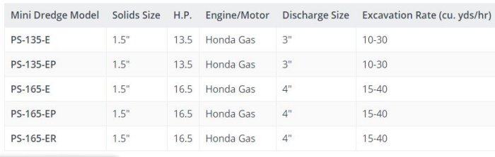The excavation capability of these units is in the neighborhood of 10-40 cubic yards per hour depending upon: the nature of your sediment, distance pumped, and your energy & skill levels.
