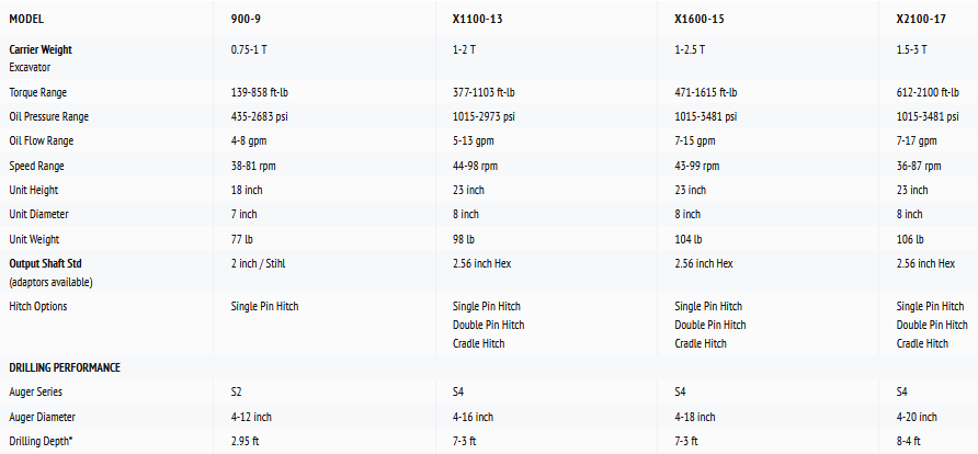 Auger Torque - Model 750kg to 3T -Mini Excavators Earth Drills