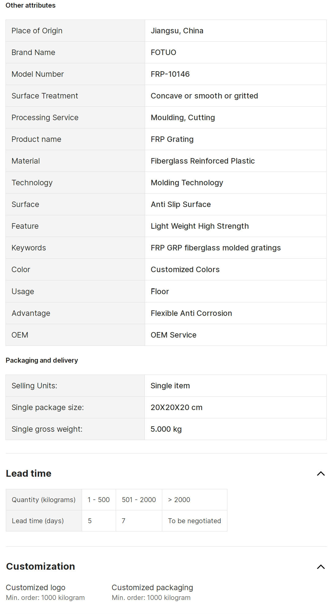 Fotuo - Mini Mesh FRP/GRP Gratings